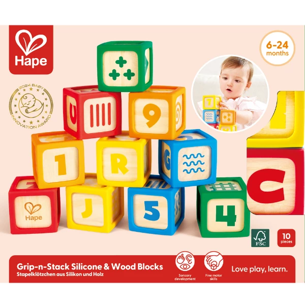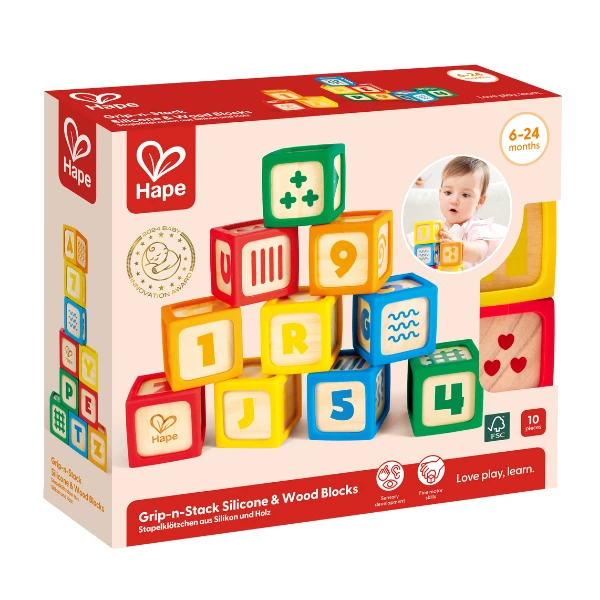 Подарите ребёнку незабываемое время игры с этим изысканным набором из 10 деревянных строительных блоков! Изготовленные из дерева с мягкими силиконовыми краями, яркими узорами и буквами, эти блоки идеально подходят для раннего обучения и маленьких ручек.