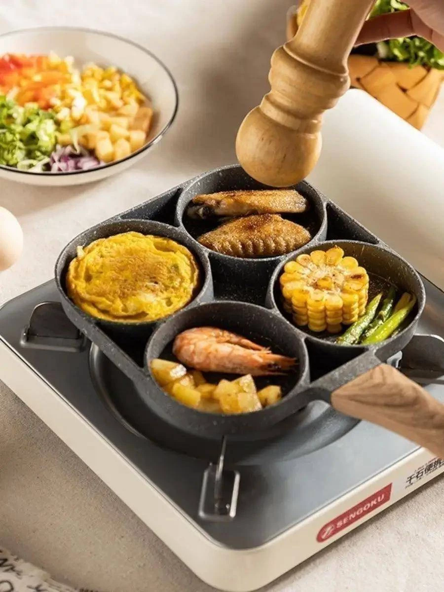Сковорода для сада или кемпинга – 4 в 1 – готовьте разные блюда одновременно.