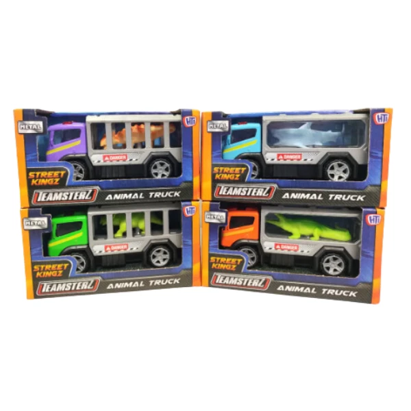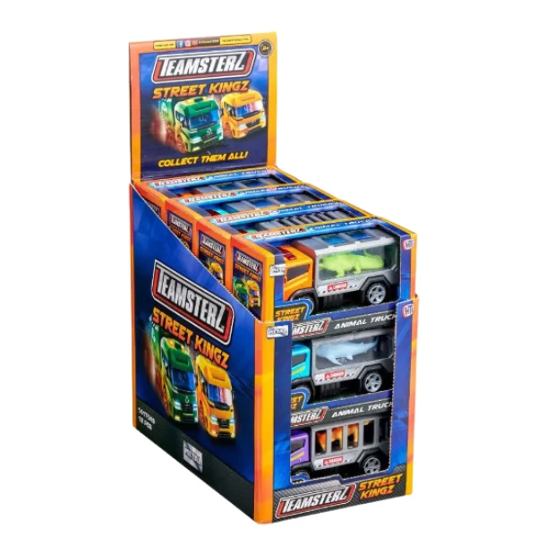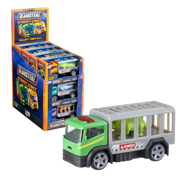 Машинки Teamsterz Street Kingz с животными — это захватывающий выбор для маленьких любителей приключений! В каждой машинке высококачественные детали из металла и независимые колеса для свободного передвижения. Ассортимент включает 4 уникальных дизайна с животными: акула, аллигатор, анкилозавр и трицератопс. Размер каждой машинки около 10 см.