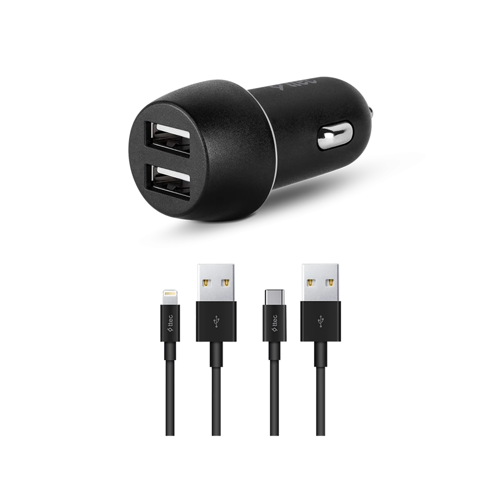Porturi duale USB-A: Incarcatorul dispune de doua porturi USB-A, permitand incarcarea simultana a doua dispozitive.