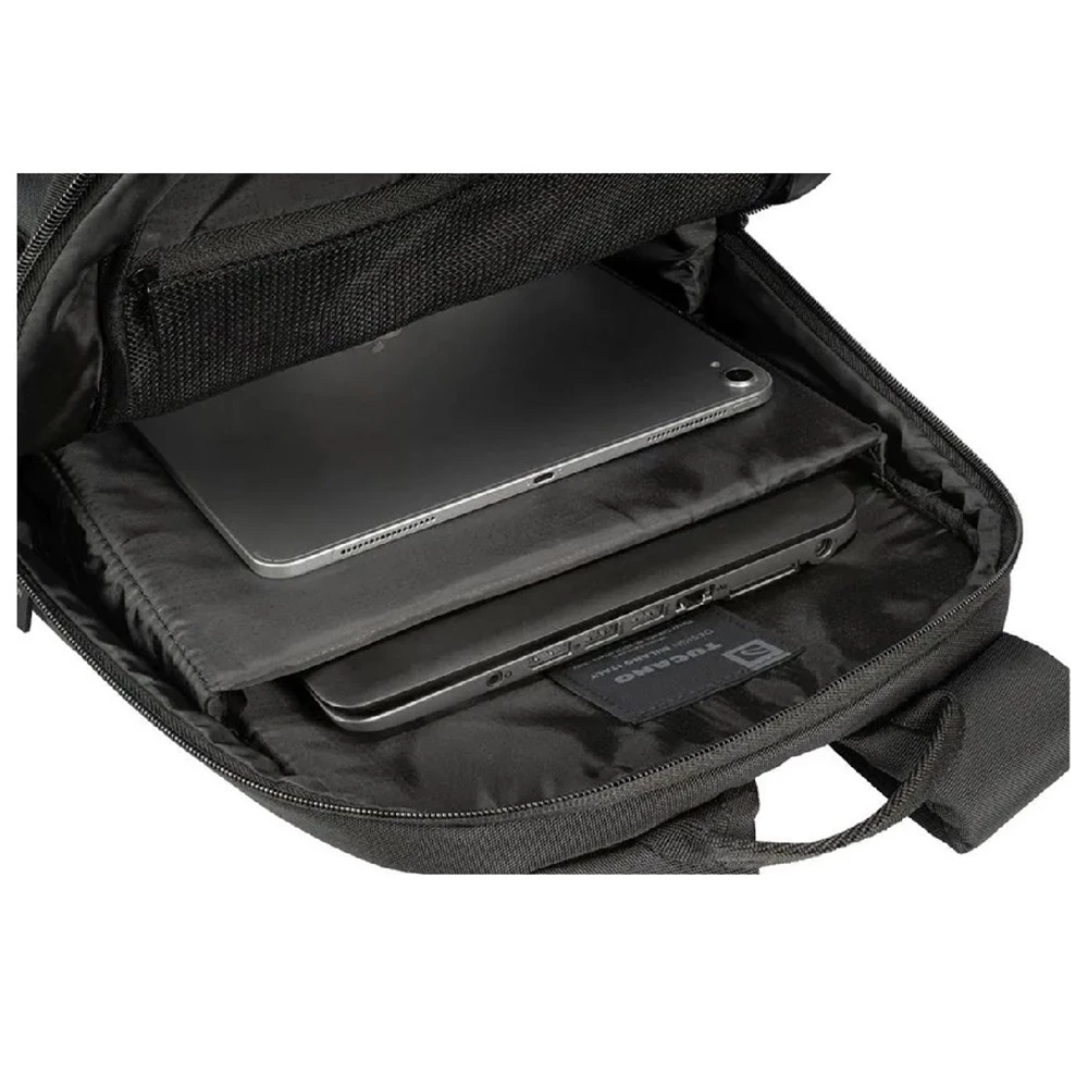 Compartiment Principal: Compartimentul principal bine organizat ofera suficient spatiu pentru laptop, tableta, carti si alte accesorii esentiale.