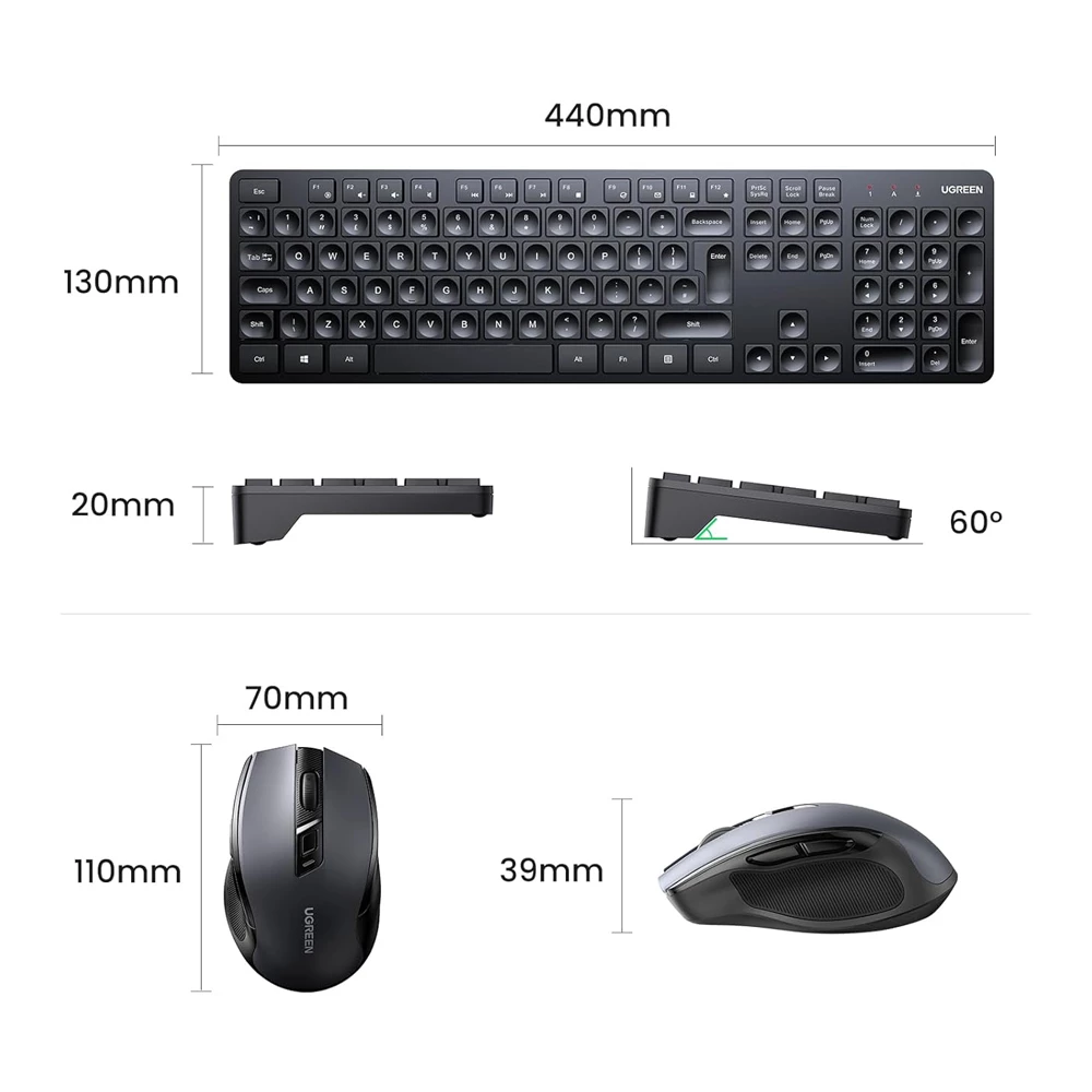 Setul foloseste tehnologia wireless 2.4GHz pentru o conexiune rapida si stabila. Este compatibil cu diverse dispozitive, inclusiv laptopuri si PC-uri, eliminand nevoia de cabluri.