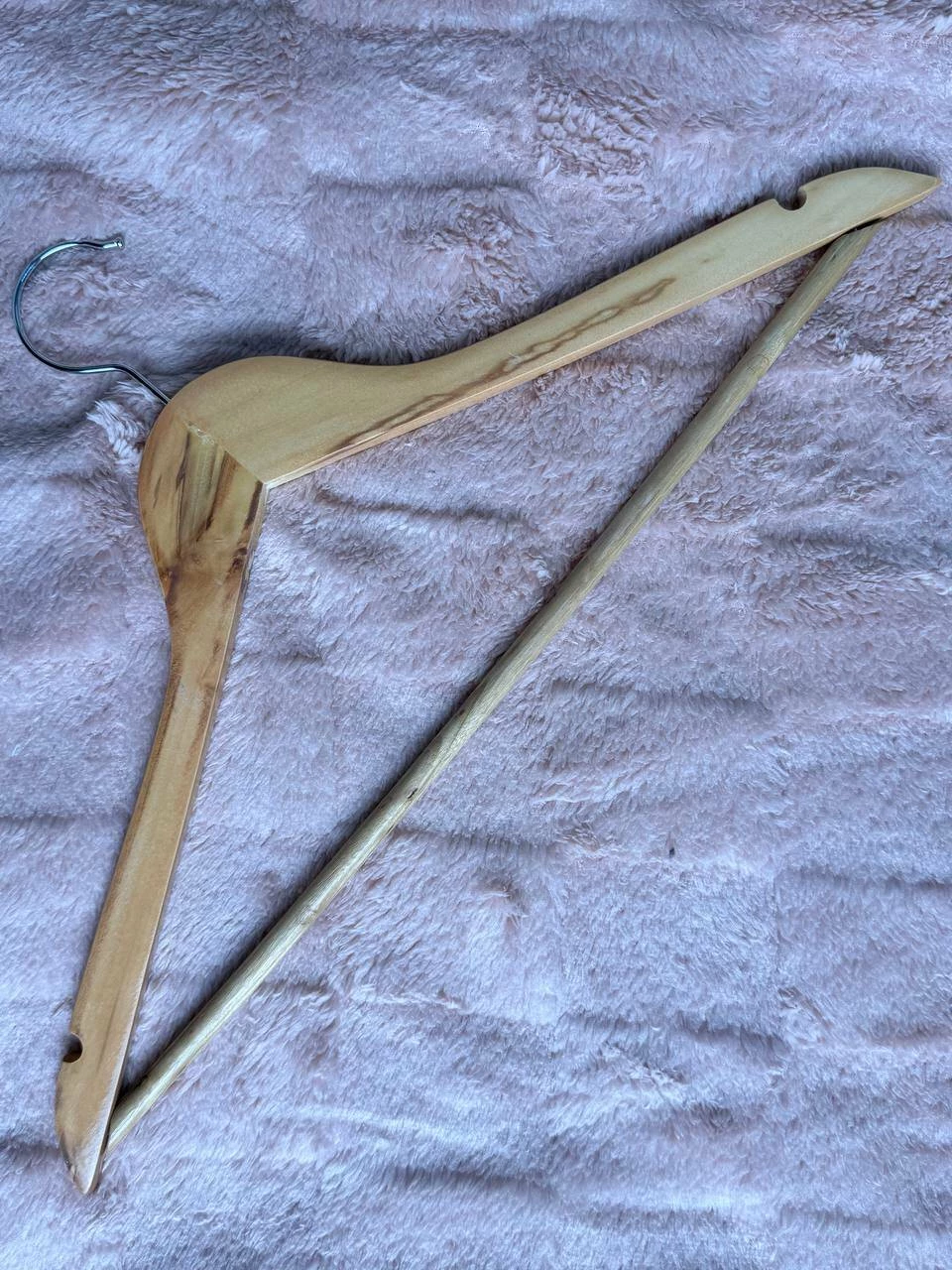 Набор из 3 деревянных вешалок, прочных и стильных, идеально подходит для одежды, пальто или брюк. Вешалки оснащены перекладиной для брюк, обеспечивая удобство и долговечность при ежедневном использовании.