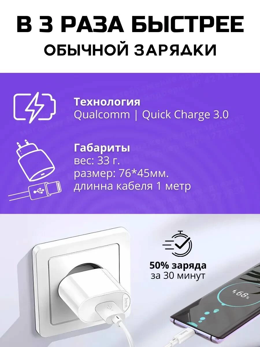 Быстрая зарядка Hoco C109A — это идеальный выбор для тех, кто хочет зарядить телефон в 3 раза быстрее, чем обычными зарядниками. Мощность 10.5W и ток 2.1A обеспечивают стабильную и ускоренную зарядку, а технология Quick Charge 3.0 делает процесс ещё эффективнее.